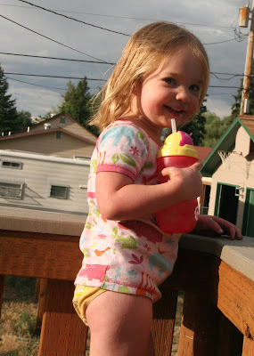 the deck is already getting it's fair share of use, especially since it's so nice out lately! i am sure i just jinxed us, but it would be hard to write about summer without mentioning the fabulous weather of late. it's also harvest time in the garden and tonight we had an especially local dinner... deer burgers, salad, corn, potatoes, green beans, tomatoes with mozzarella and basil, and zuccini bread for desert... yum. all except the corn (ours is just starting to make ears!) was from our garden or that of a couple friends. i am no food photagrapher however, and my pictures didn't really do it justice-- hence the cute baby pictures interspersed instead!